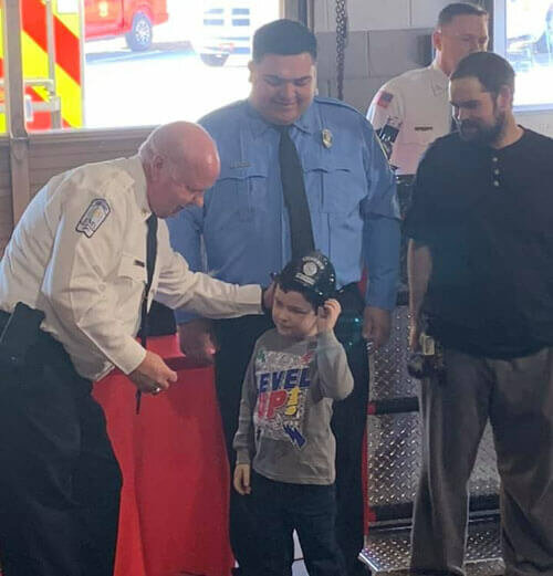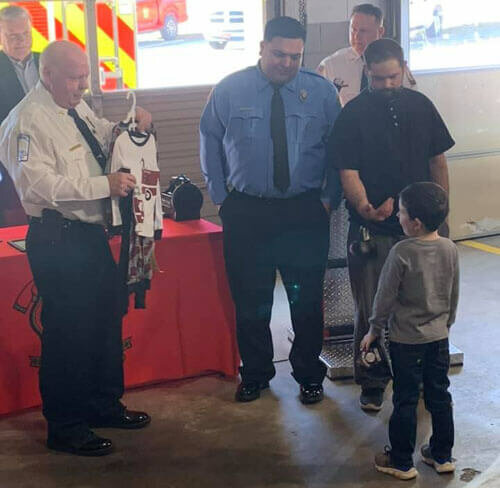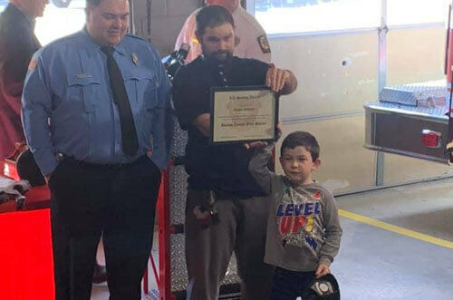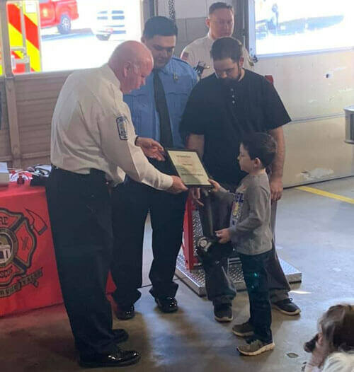 Není divu, že taková odvaha zapůsobila i na profesionální hasiče. Pozvali chlapce a na jeho počest uspořádali slavnostní ceremoniál.