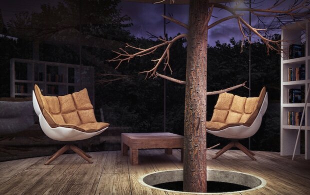 Strom v domě, navržený Aibekem Almasovem ze společnosti A. Masow Architects, je trubková skleněná konstrukce postavená kolem stromu uvnitř.