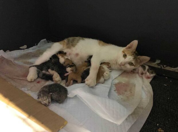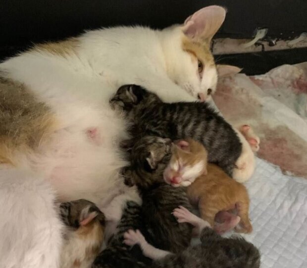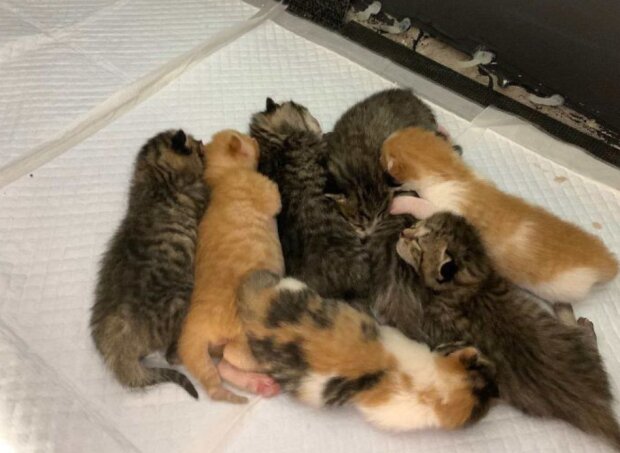 O pár dní později, večer, všichni opustili kancelář a další ráno našli nový přírůstek - osm novorozených koťat!