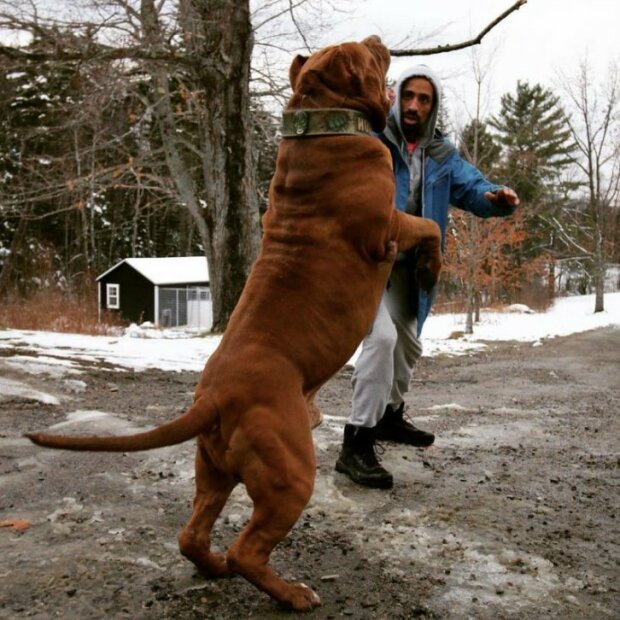 Impozantní rozměry psa způsobí, že se každý přesune na druhou stranu ulice.
