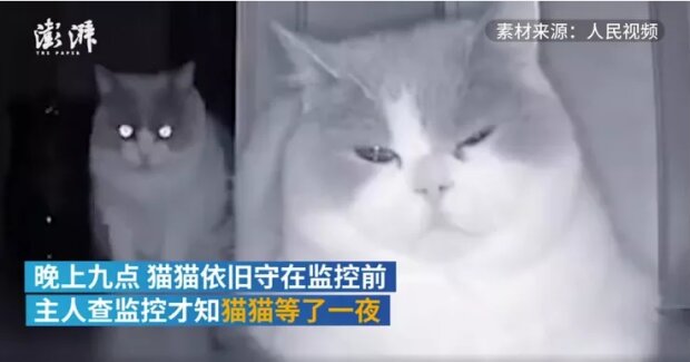 Kamera také zaznamenala, jak věrné zvíře čekalo až do noci, a nakonec usnulo vedle kamery. Záběry také ukazují, že blíže k ránu ji navštívila druhá kočka - nepřítomnost majitele ji očividně nevadila.