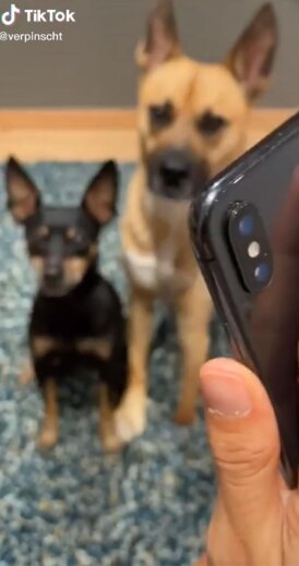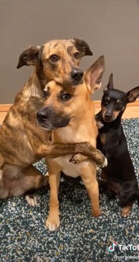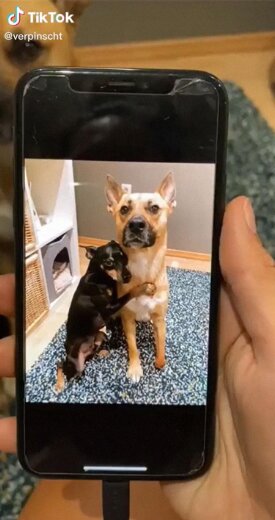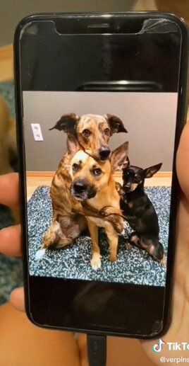 V 50sekundovém videu Vanessa ukazuje psům na obrazovce telefonu jejich fotografií, pak psi okamžitě vytváří pózu, kterou uviděli. Tato roztomilá stvoření se navzájem objímala svými malými tlapkami a roztavila srdce více než 10 milionů sledujících.