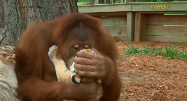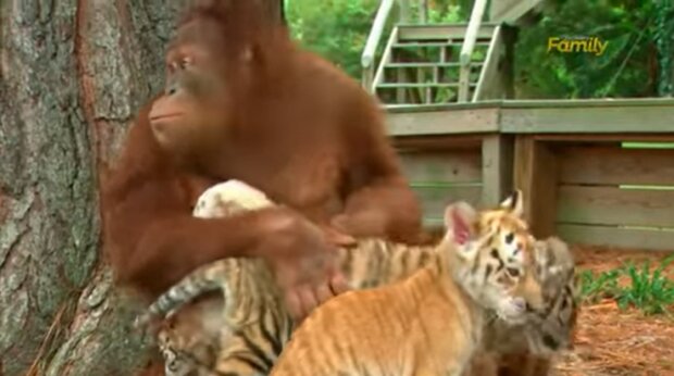 Nezasahovali, zejména proto, že to dělá nejlépe. Jako pravý příkladný otec krmí z láhvi a hraje si s nimi každý den. Ve všech jeho pohybech jsou péče a něžnost o děti. Rodičovský instinkt se projevuje občas docela nečekaně. Ukázalo se, že to byla docela neobvyklá rodina!