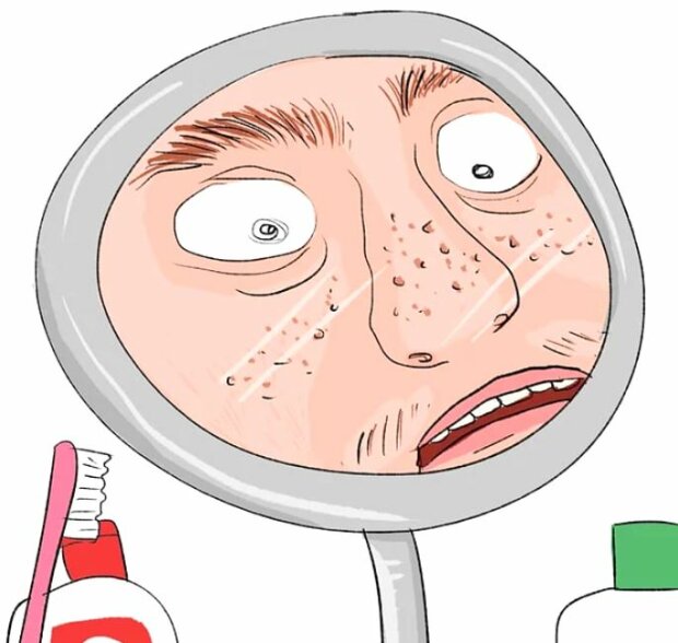 2. Dívají se přes zvětšovací sklo a jsou zděšeni, jaké obrovské póry a husté obočí mají