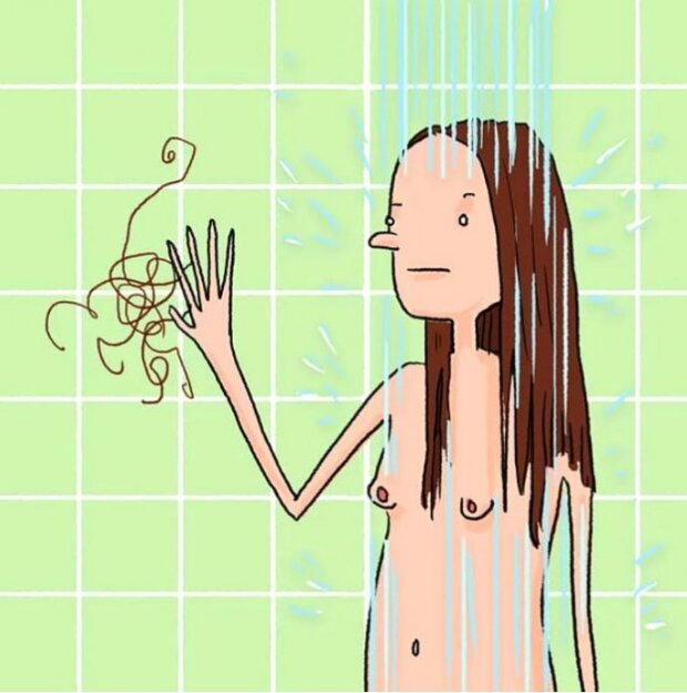 6. Během sprchování nechávají vlasy na dlaždicích