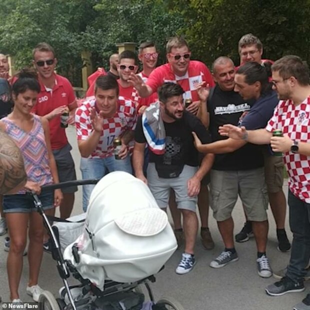 Do Trnavy přijel poměrné slušný počet náruživých chorvatských fanoušků. Jedna ze skupin před zápasem odpočívala v parku - jak se patří s pivem a písničkou. Zábava utichla, když spatřili mladou maminku s kočárkem.
