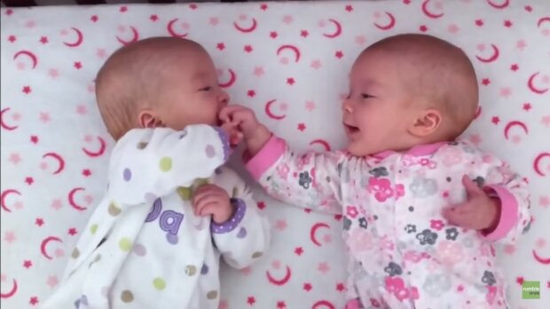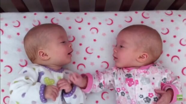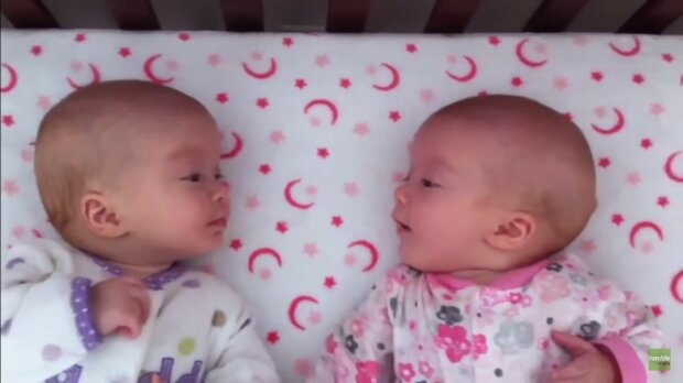 Představte si, jak zajímavé musí být vidět někoho, kdo vypadá úplně stejně jako vy. Je úžasné sledovat, jak na sebe tato miminka dělají sladké ksichtíky a snaží se spolu komunikovat pomocí různých zvuků. Sice jim nemůžeme rozumět, ale je to jejich vlastní jazyk. Ať už si říkají cokoliv, vypadá to, že se perfektně domluví!