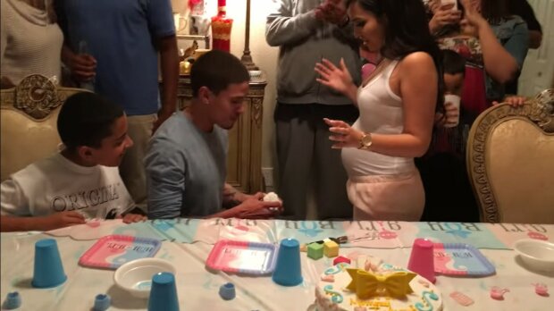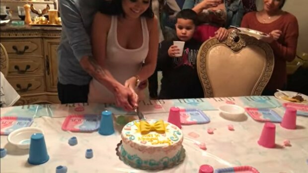 Při této příležitosti uspořádali Dinahleigh a Anthony párty pro rodinu a přátele. Rozhodli se, že chtějí společně s nimi zjistit pohlaví svého dítěte. Po návštěvě ultrazvuku si vzali snímek s popisem vyšetření a doručili jej do cukrárny, která měla připravit speciální dort, v němž mělo být ukryto řešení hádánky. Pokud by to měla být holčička, dort by byl uvnitř růžový, v případě chlapce zas modrý.