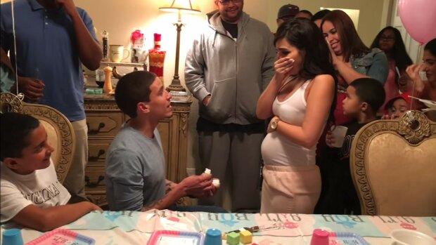 Je to docela originální způsob, jak zjistit pohlaví dítěte. Cukrárna doručila dort, přišli pozvaní hosté a pár začal krájet. Dinahleigh byl překvapena, když uviděla, že dort není ani růžový ani modrý, ale nůž narazil do něčeho tvrdého. Anthony vytáhl krabičku, ve které byl prstýnek!