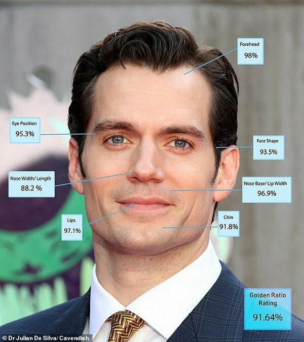 Na druhém místě se podle studie objevil hezký „Superman“ Henry Cavill, který také hrál legendárního Geralta v seriálu HBO „Zaklínač“. “Zlatému řezu“ odpovídá na 91,64%.