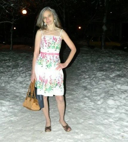 Za každého počasí nosí lehké oblečení. Možná proto vypadá stále tak dobře. Skutečnost je taková, že jí je už osmapadesát let, ale většina lidí si myslí, že je stará jen zhruba třicet let.