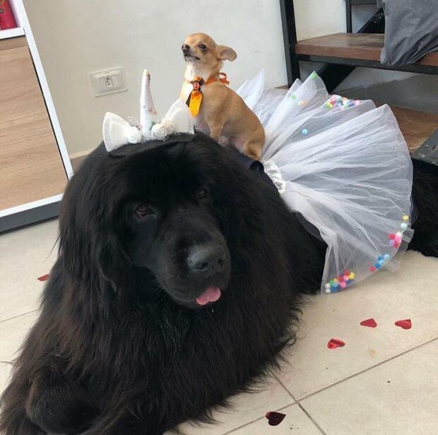 "Je zajímavé sledovat, jak se můj Novofundlandský pes setkává s malými psy."