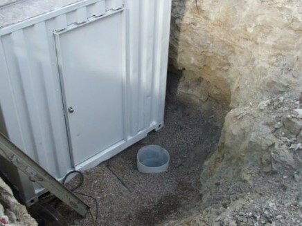 Už to bylo jasnější. Kontejner měl být na dně jámy.