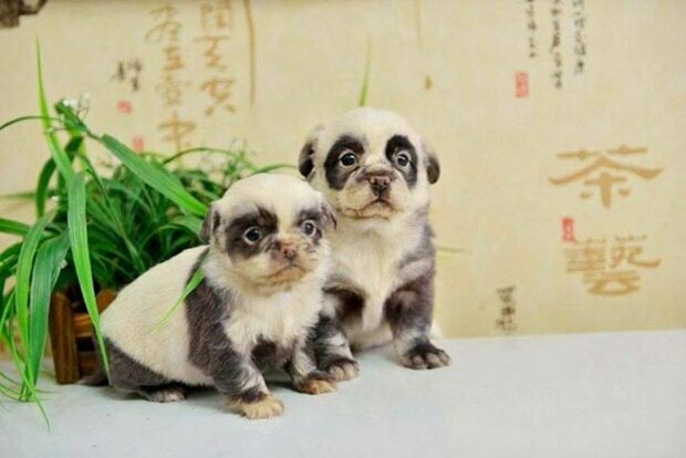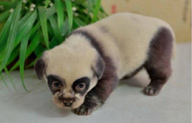 Ale tady se stal zázrak: obyčejné křížence se narodila štěňata, která vůbec není třeba barvit! Jsou celá panda již od narození.