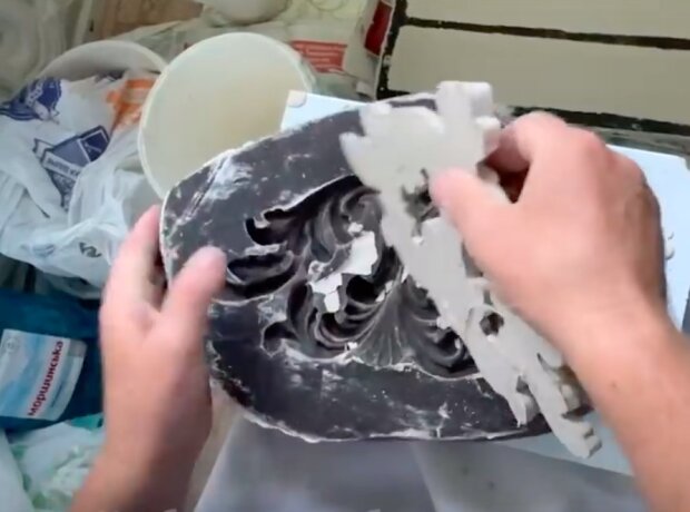 Důchodce je obzvláště hrdý na skluz pro odpadky, který přeměnil na starožitný sloup s Atlanty.