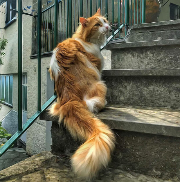 Ligurie je nejkrásnější oblast Itálie a Grosso je její výzdoba. Navzdory teplému klimatu páníčka nenechala ostříhat a zbavovat přírodního bohatství kocourka. Je z plemene Kurilský bobtail, a proto vyniká krásnou srsti, skvělými fyzickými vlastnostmi a pronikavým vzhledem. Toto plemeno není jednoduché a Grossu vytáhl šťastný lístek, nikdo ho nevozí výstavami, ale jen ho dobré krmí a hodně fotografuji.