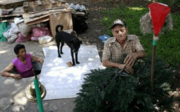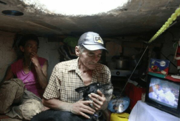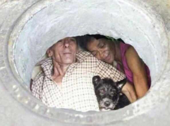 Jednou našli starou a nevyužívanou kanalizační jámu. Byla dost prostorná. Voda tam už nebyla. Manželé se tedy rozhodli, že si z ní udělají domov, a začali si kanalizaci zařizovat. Donesli tam postel a skříň. Museli je rozebrat a znovu složit, protože jinak by se do úzké jámy nevešly.