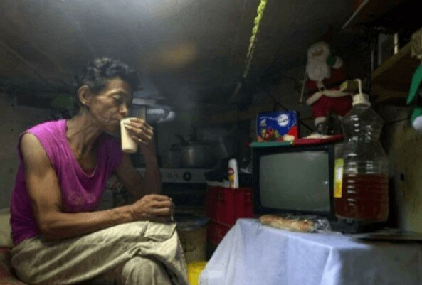 Maria nepracuje. Michel má na starosti obsluhu parkoviště. Jeho mzda jim stačí na jídlo a elektřinu. Uživí se také z malého pozemku, který se nachází poblíž. Když prší, zavírají příklop a sledují televizi.