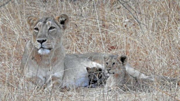 V národním parku Gere v Gujaratu dospělá lvice se dvěma malými mláďaty adoptovala osamělé leopardí mládě! Tato podívaná je zábavná a neobvyklá, ale co ještě důležitější: je první případ v historii vědy, který byl oficiálně zdokumentován. Dříve to všechno nepřesahovalo rámec legendy.