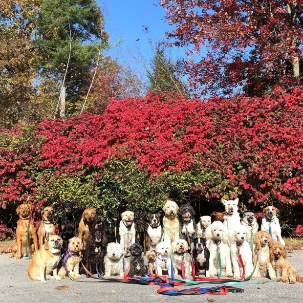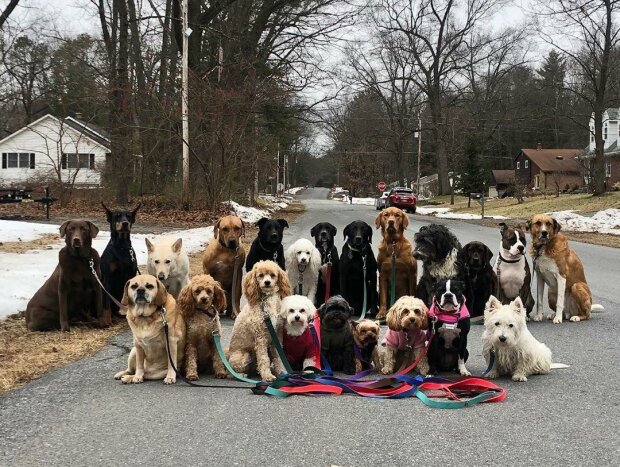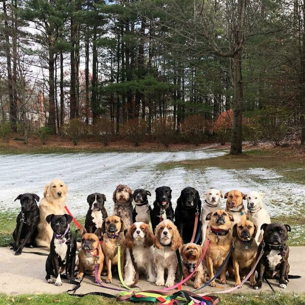 Toto je Saratoga Dog Walkers, která patří Timovi Pinku. Nachází se v malém městečku Saratoga Springs. Tim není jen vlastníkem, ale také hlavním zaměstnancem společnosti. Dokáže vyvenčit až dvacet psů najednou! Zveřejňuje fotografie ze svých procházek na Instagramu.
