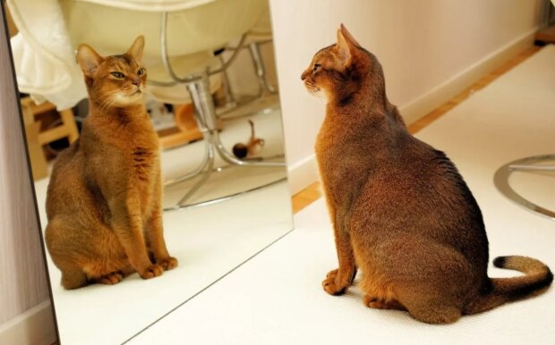 Pouze kočky mohou o tom říct a my můžeme jen předpokládat, že i když se domácí mazlíčci vidí dokonale v zrcadle, neidentifikují se s odrazem. To je částečně způsobeno tím, že kočičí smyslové orgány nefungují samostatně, ale v kombinaci, a viditelný obraz je vždy doplněn zvukem nebo zápachem, které v odrazu chybí. Proto se někdy kočky bojí, nebo se naopak snaží hrát s nově objeveným zrcadlovým přítelem.