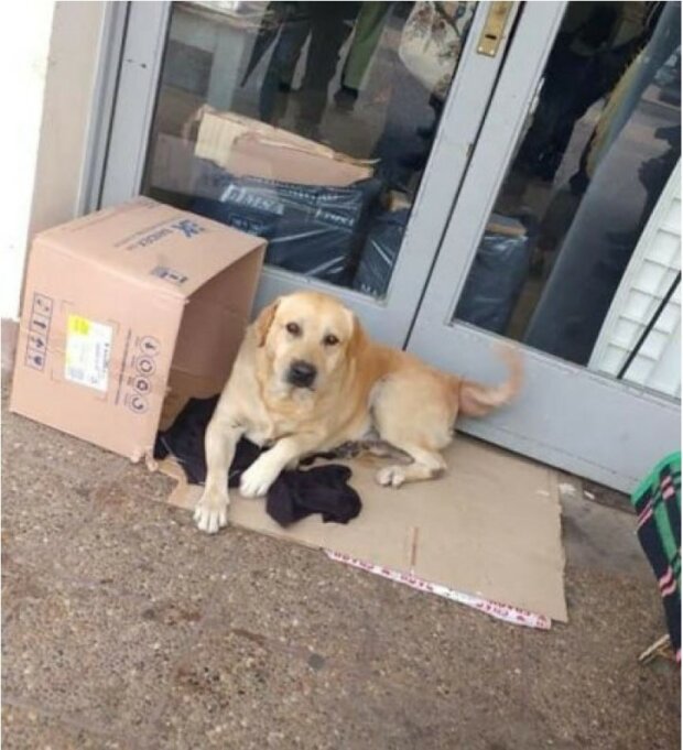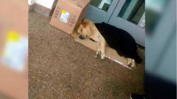 Toto neopouštěl boční vchod do nemocnice. Zaměstnanci tam dali krabici a kousek lepenky, na které pejsek mohl ležet.