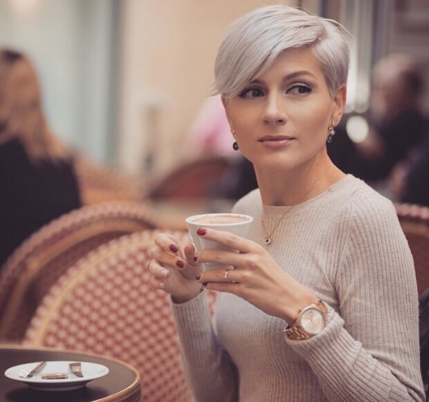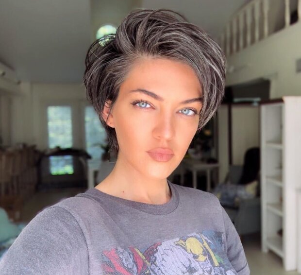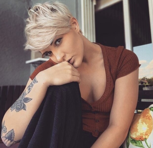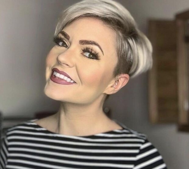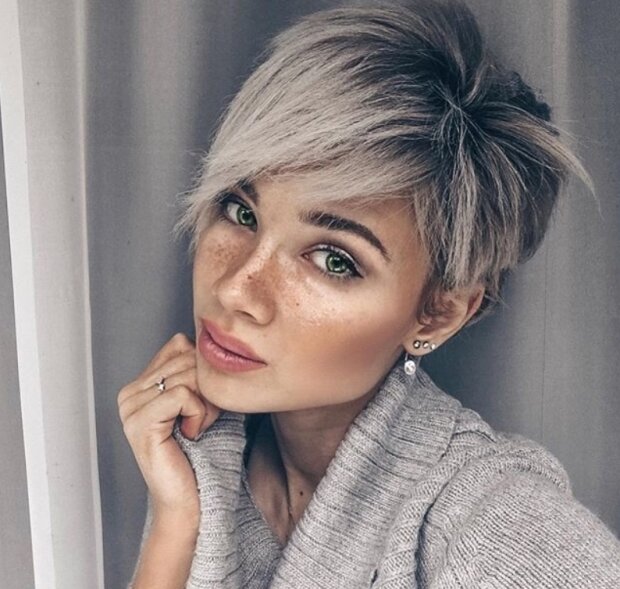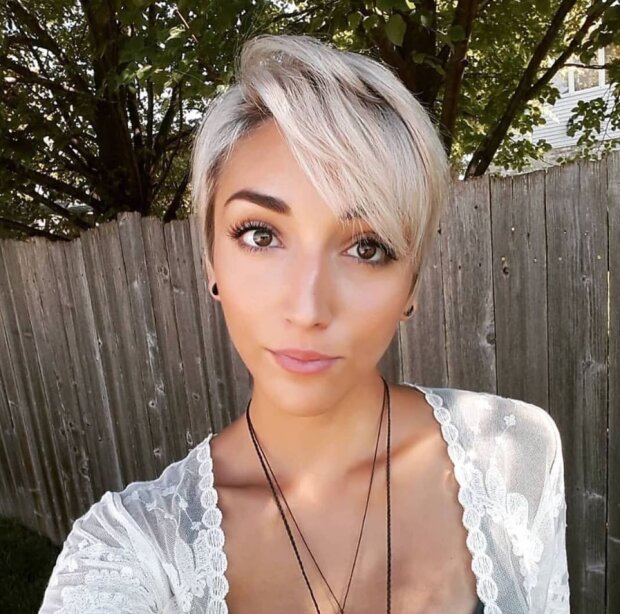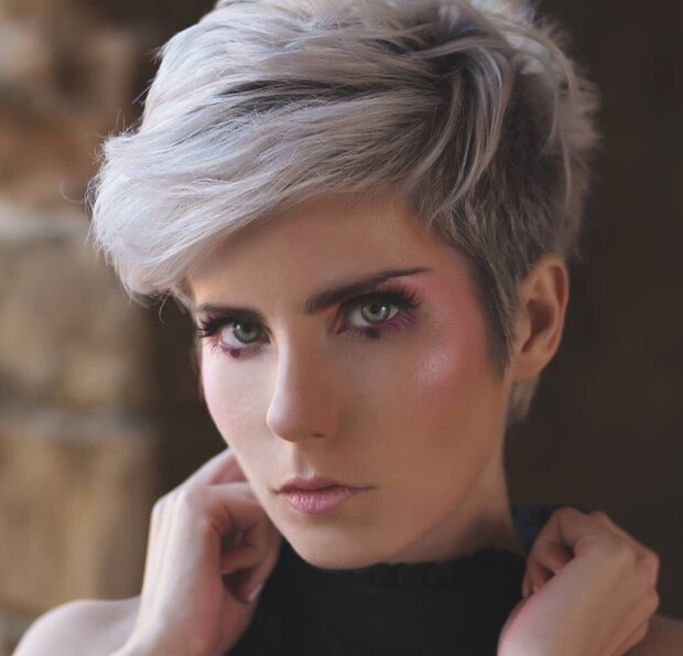 Krátký pixie na světlých pramenech, vypadá jemně, romanticky a stylově.