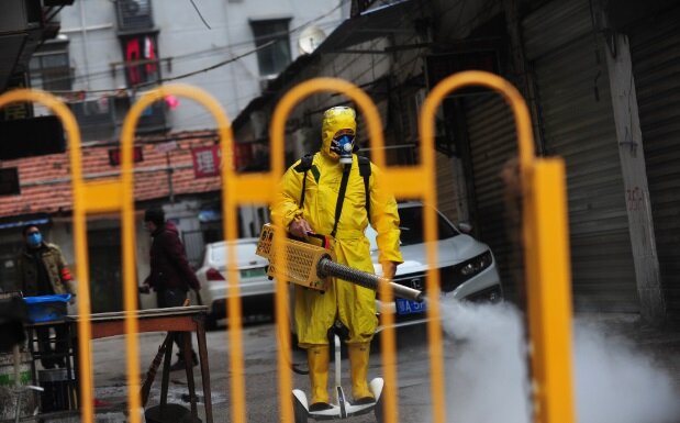 Dobrovolník dezinfikuje ulice Wu-chanu, který se stal epicentrem šíření viru SARS-CoV-2. Podle nejnovějších údajů počet nakažených v Číně překročil 81 tisíc, více než 122 tisíc se vyléčilo a 3 287 lidí zemřelo.