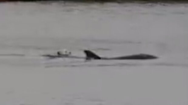 Z boku to vypadalo jako pes a delfín hrající na honěnou.