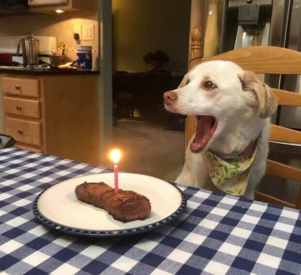 4. „Tento pán dnes slaví 15 let! Přeji všem čtyřnohým přátelům všechno nejlepší k narozeninám! “