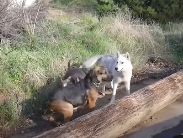 Najednou, nečekaně, z křoví došel pes a zamířil k nim. Nejprve se mladí lidé báli. Koneckonců neměli ani tušení o záměrech toulavého zvířete. Obavy se zesílil ještě víc, když ze stejných keřů došel další pes. Chlapci si mysleli, že tito psi chtěli na ně zaútočit. Navíc byla zvířata zjevně nervózní. To však nebylo takhle. Naopak, požádali o pomoc. Zdálo se, že jedno ze zvířat láká lidi za sebou.