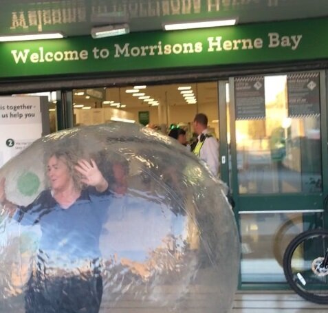 V této kouli se Britka vydala na nákup do supermarketu Morrisons