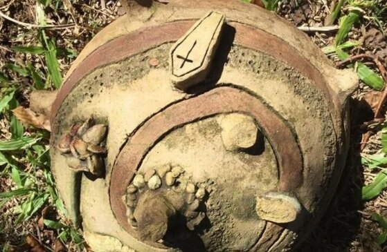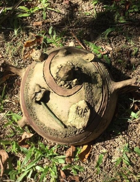 Ženu zarazil divný ornament na předmětu a vůbec jeho přítomnost v zahradě. Třeba je to talisman nebo něco takového? Lidé přece zavěšují podkovy pro štěstí nebo malují různé vzory, která odhání zlé duchy. Jakmile zmínila nečisté síly, pozornost upoutal hrobeček s křížkem na straně předmětu. Kerry se dlouho nerozmýšlela a zveřejnila fotografii nálezu na sociálních sítích, kde se ptala o radu.