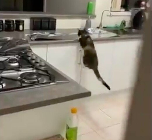 Jeden Austral se rozhodl odnaučit kočku, aby skočila na kuchyňský stůl.