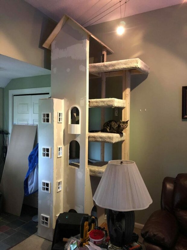 Američan Rob Kutu se rozhodl dopřát svým kočkám radost a udělal pro ně bydlení vlastnoručně. Mužův projekt vyšel neuvěřitelný a kočky ho ocenily ještě ve fázi stavby.