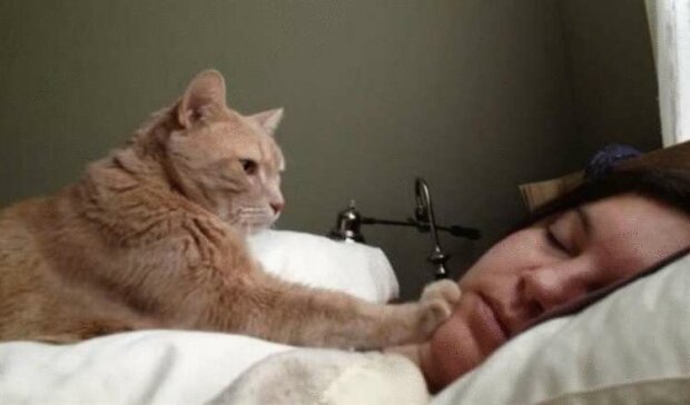 3. Když člověk spí, musí kočka chránit jej spánek.