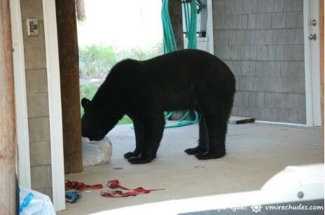 Ve svém rodném prostředí medvěd bezesporu vypadá šťastněji. Myslím si, že teď se bude nějakou dobu držet dál od vody.
