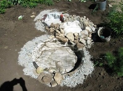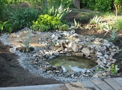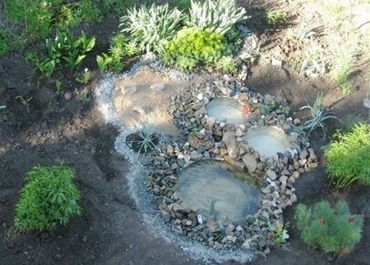 Jamile máte hotovou technickou část, můžete přejít ke kreativnímu chystání jezírka. Reliér můžete vytvořit podle svého vkusu.
