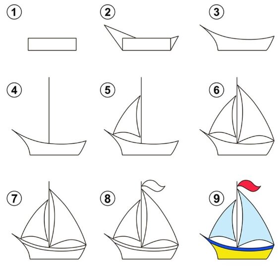 Skvělá varianta pro malé milovníky námořní tématiky. Vidíte, že malování loďky spočívá ve zcela jednoduchých krocích.