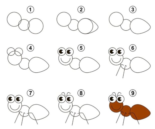 Postupujte podle našeho návodu a v mžiku se na vás bude usmívat takový přátelský mravenec. Navíc si dítě při tvorbě vypracuje i jisté návyky, které mu v budoucnosti umožní představit si mnohé věci i bez takových šablon.