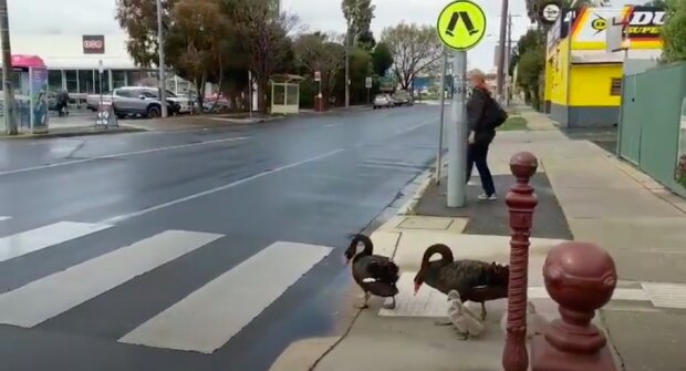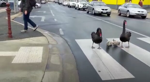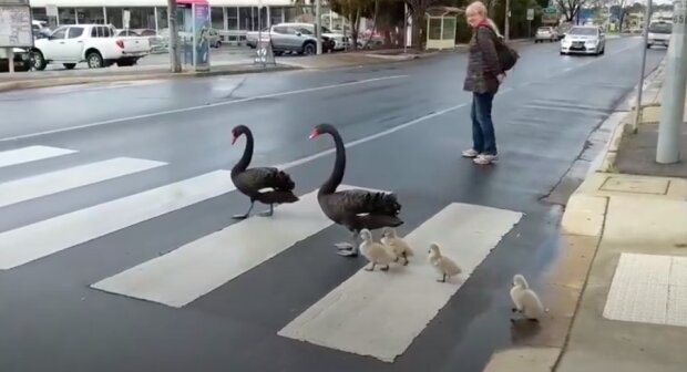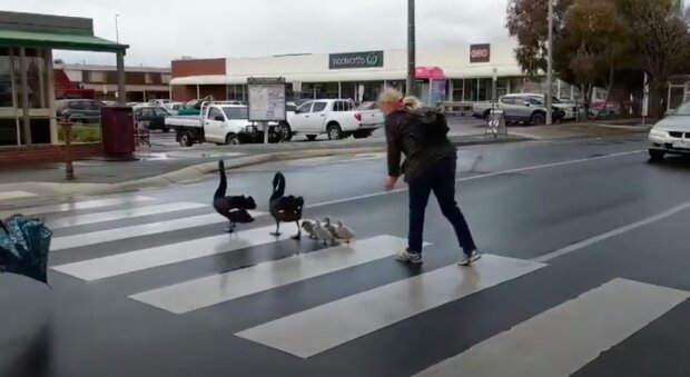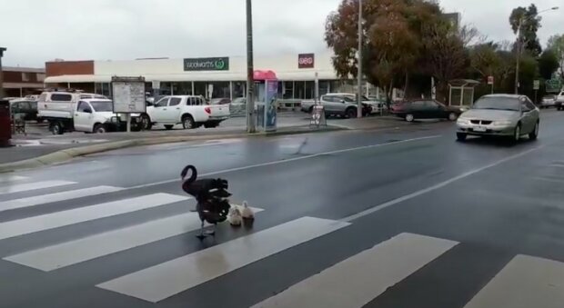 Klidně a v souladu se všemi pravidly kříží silnici.