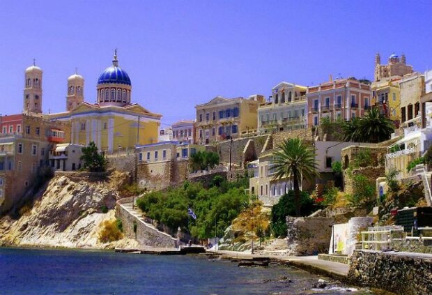 Toto je Syros, velký ostrov souostroví Kyklady v Řecku.
