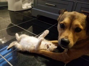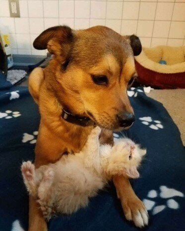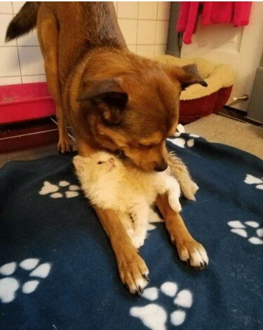 Victorii to ani moc nepřekvapuje. Turbo je totiž terapeutickým psem. Nedávno šel se svou majitelkou navštívit lidi s Downovým syndromem. Turbo je jak k lidem, tak ke koťátkům velmi laskavý a něžný.