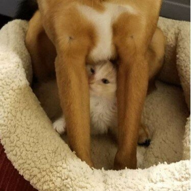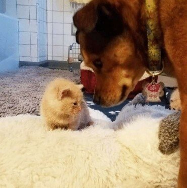Pes se vždy chová velmi klidně, aby nevyděsil nervózní lidi. Stejně se chová i ke koťátkům.