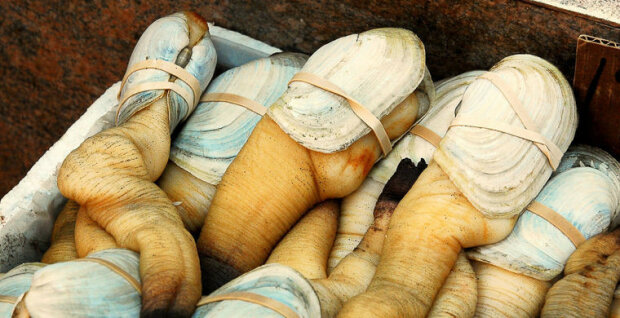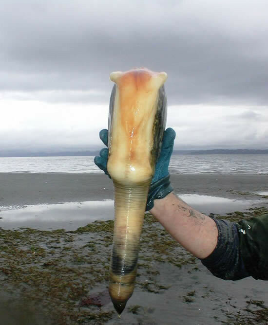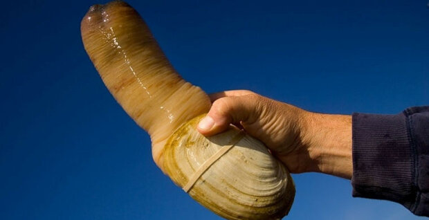 Na obrázku vidíte dutinovku tichomořskou (Panopea generosa), úžasný měkkýš, jehož průměrná délka života je 146 let. "Panopea generosa", překládaný z jazyka indiánů, znamená „kopat hluboko“. Tito tvorové získali takové jméno, protože jejich schopnost rychle se zakopat do písku je prostě fenomenální.