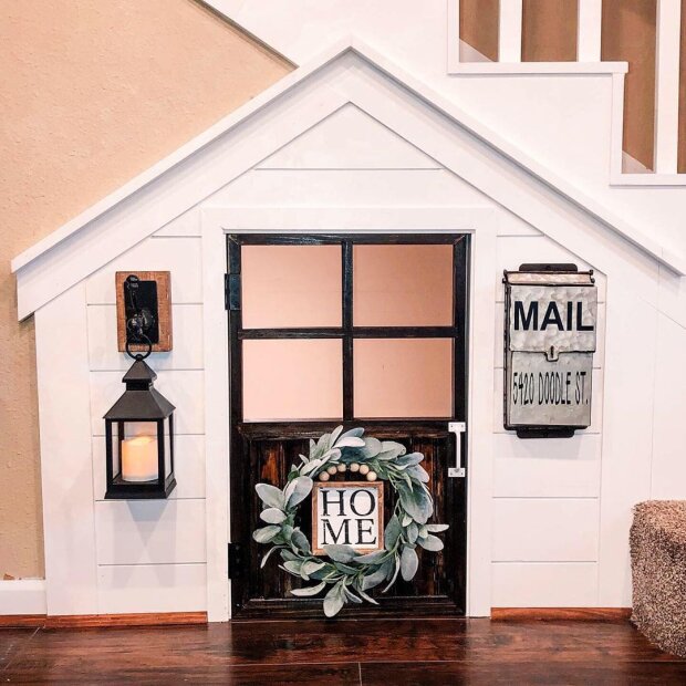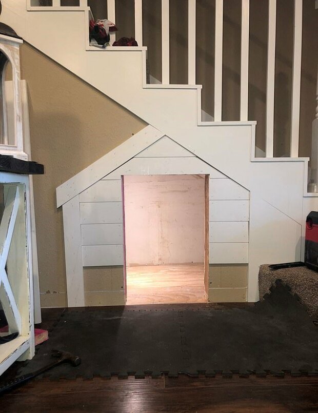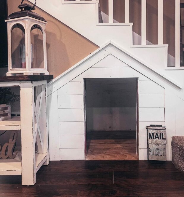 Pak přišla Kimberly s nápadem vytvořit dům přímo pod schody. A to, co dívka plánovala pro štěňátko, měli by závidět všechny ostatní psy.