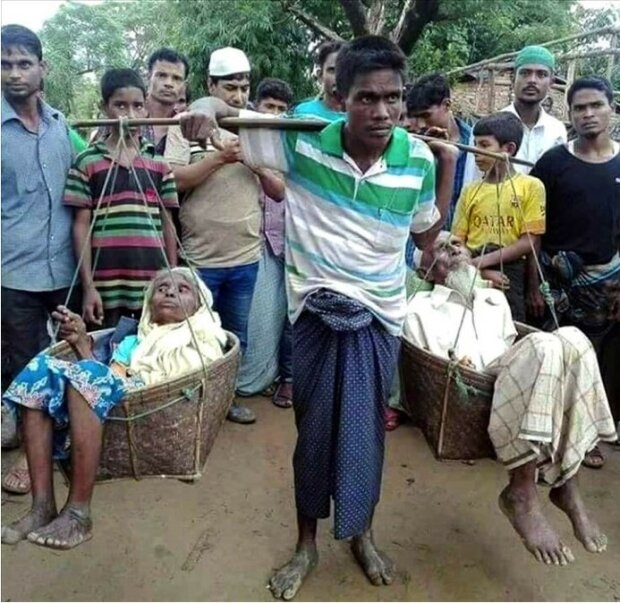 Některé státy Myanmaru se pravidelně stávají arénou násilných nábožensko-etnických konfliktů mezi muslimy-rohinjou a bol'shinstvom naseleniya, ispoveduyushchego buddizm. Těžko říci, kdo za tyto sváry může, a letrpí však jako vždy civilisté, kteří jsou nuceni masivně uprchnout do sousedních zemí. Většina z nich se stěhuje do Bangladéše. V roce 2017 se díky této fotografii, která se dostala do médií, dozvěděly miliony uživatelů sociálních sítí o těžkém osudu uprchlíků v této oblasti. Jedinečný příběh synové vděčnosti ohromila lidi až do srdce. Mladík Muhammad Ayuba při odchodu z rodného domu doslova vzal s sebou rodiče. Ochrnutou matku a těžce nemocného otce posadil do proutěných košů a táhl na sebe celých sedm dní. Cesta uprchlíků navíc neležela podél silnic, ale skrze hory, lesy a bažiny.
