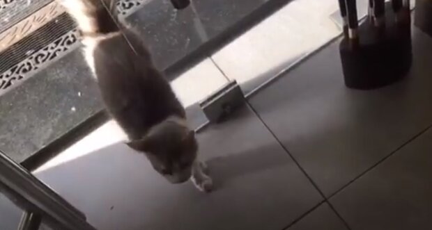 Jednoho slunečného dne někdo začal klepat na dveře veterinární kliniky. Muž sedící u recepce nejprve nechápal, co se děje, protože nikoho neviděl. Ale vstal ze svého pracoviště a šel ke dveřím, okamžitě zapnul videokameru na telefonu.