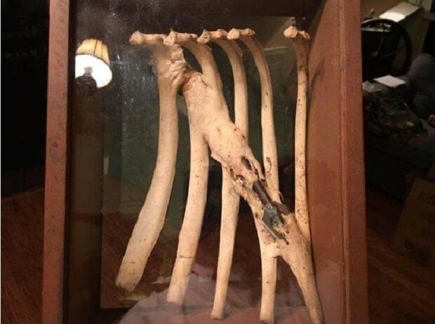Šíp dávného lovce rozdrtila žebra jelena a uvízl tam. Zvíře přežilo a jeho kosti se srostly kolem kusu kovu.