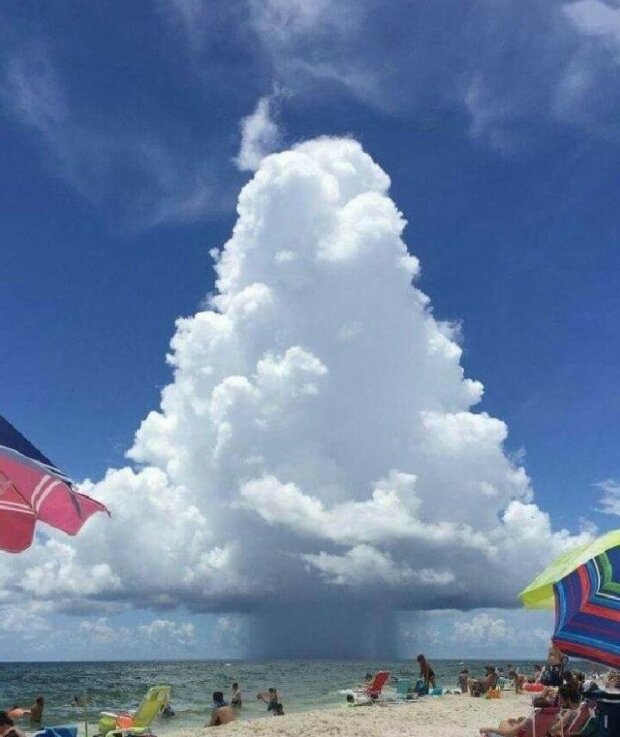 Tento dešťový oblak se dostal do tvaru vánočního stromu, ale pršelo